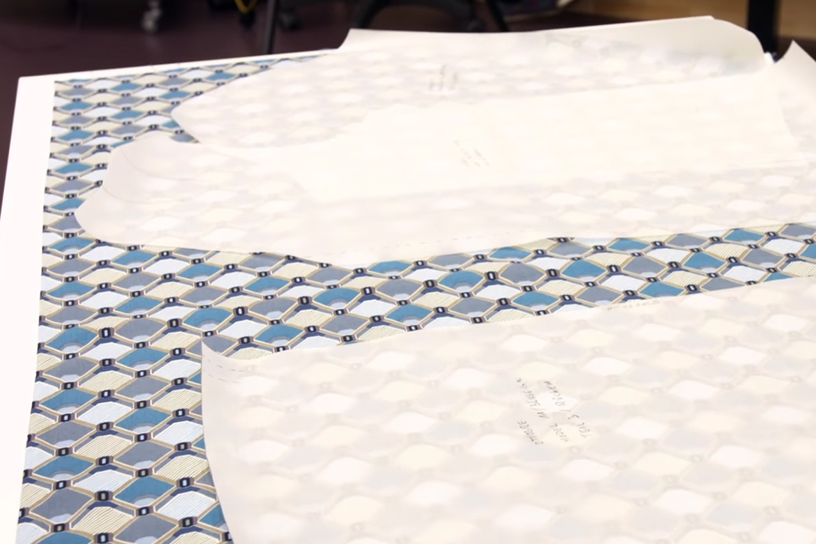 Eine Bluse aus gemustertem Stoff zu nähen, ist gar nicht so leicht, wie Monika in der letzten Blusensendung erfahren musste. Für eine Nähanfängerin ist sie ziemlich mutig! Der blaue Viskosestoff sollte vor dem Zuschnitt unbedingt gewaschen werden, weshalb sie die Teile nach dem Waschen zuhause zugeschnitten hat. Das hat sie bestimmt einige Nerven gekostet! 🙂 Wichtig ist, dass jeder Schnitt vor dem Zuschnitt des Stoffes auf die eigenen Maße angepasst wird. Das hatten wir in der letzten Sendung erledigt. Jetzt geht`s endlich ans Nähen, was bei gemusterter Viskose auch nicht so einfach ist.