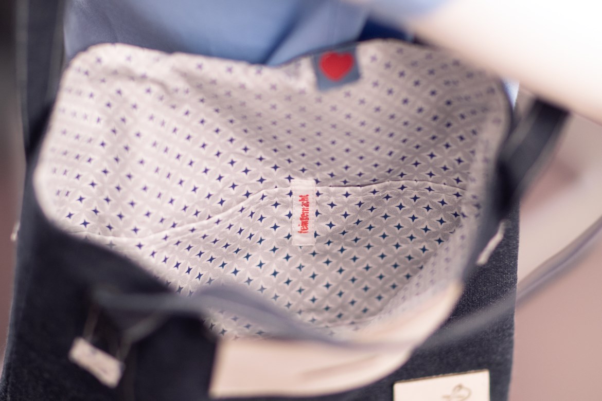 Tasche wenden und obere Kante bügeln und schmal absteppen. Wendeöffnung schließen.