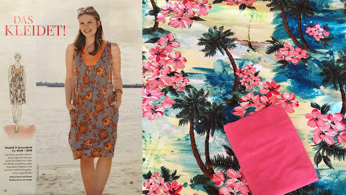 Monika hat sich für ein Jersey-Kleid in kräftigen Farben entschieden nach Schnitt aus „Meine Nähmode plus“, Ausgabe 1/2018 vom OZ-Verlag.